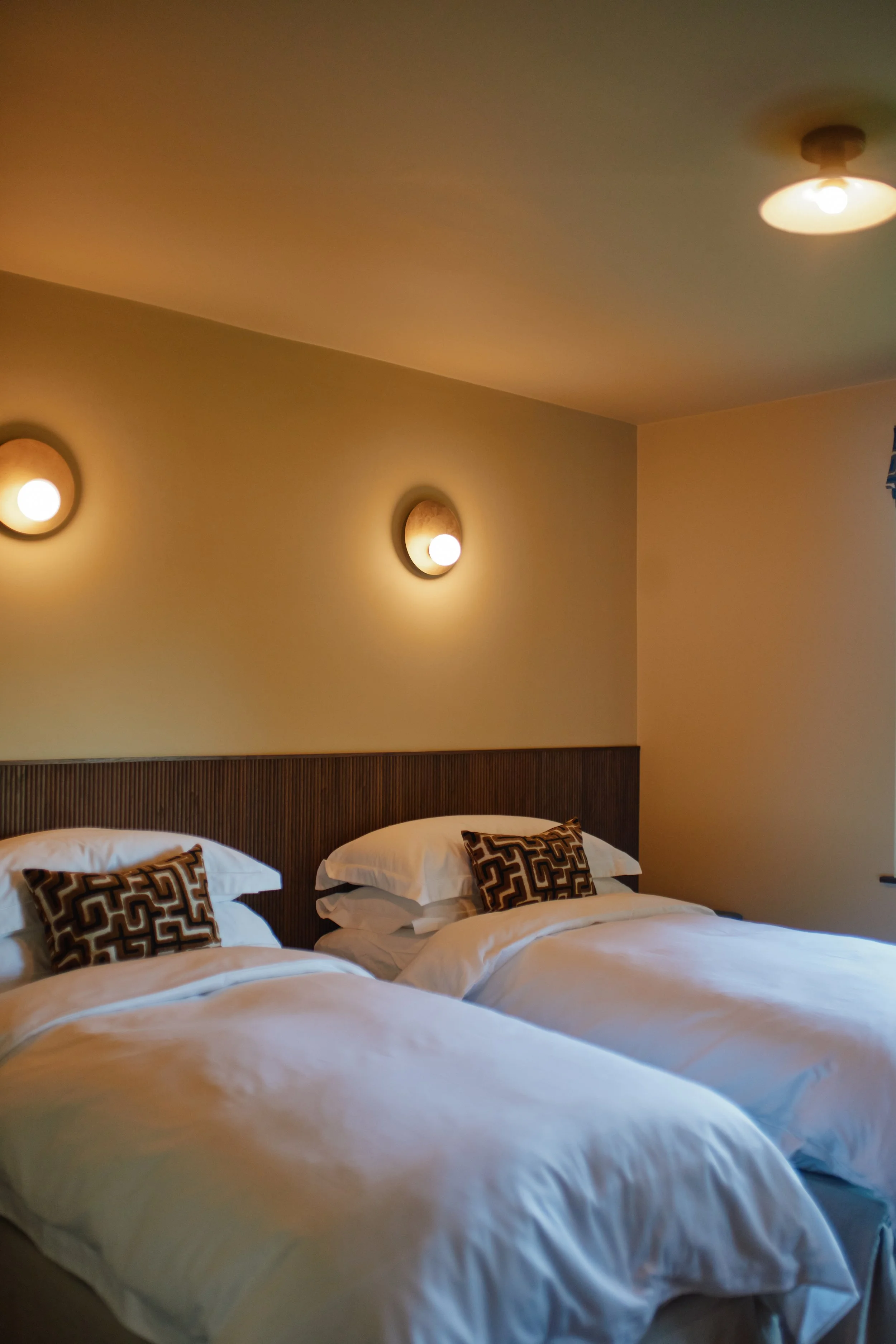 A flexible room that can be set up as twin beds or zipped together as a super king, suitable for a range of stays. Lots of natural light and large mirror make the room feel bright and comfortable.